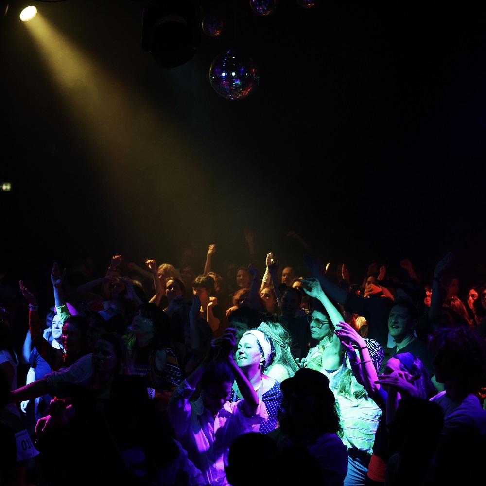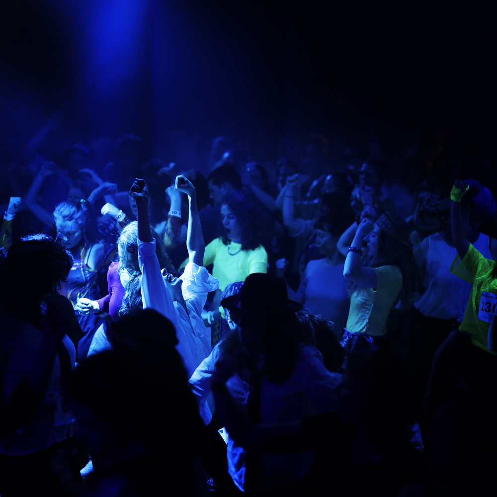 Il faut danser sans s’arrêter (c’est le principe mais bon, on a le droit de souffler sans risquer l’élimination comme dans On achève bien les chevaux !), toujours, en mimant le sport, la peur, en faisant le robot, au ralenti, en courant… Tout le monde joue le jeu à fond. Les participants ont le droit de monter sur scène et ne s’en privent pas. Pendant quatre heures, on ondule, on saute, on lève les bras, on fait karaoké en hurlant en chœur la chanson de Titanic, on s’affronte en battle, et on tente de suivre la chorégraphie récurrente qui, partant d’une simple « macarena », s’enrichit au fur et à mesure de nouveaux gestes et devient source de pas mal de rigolades. Le dance floor est en surchauffe.