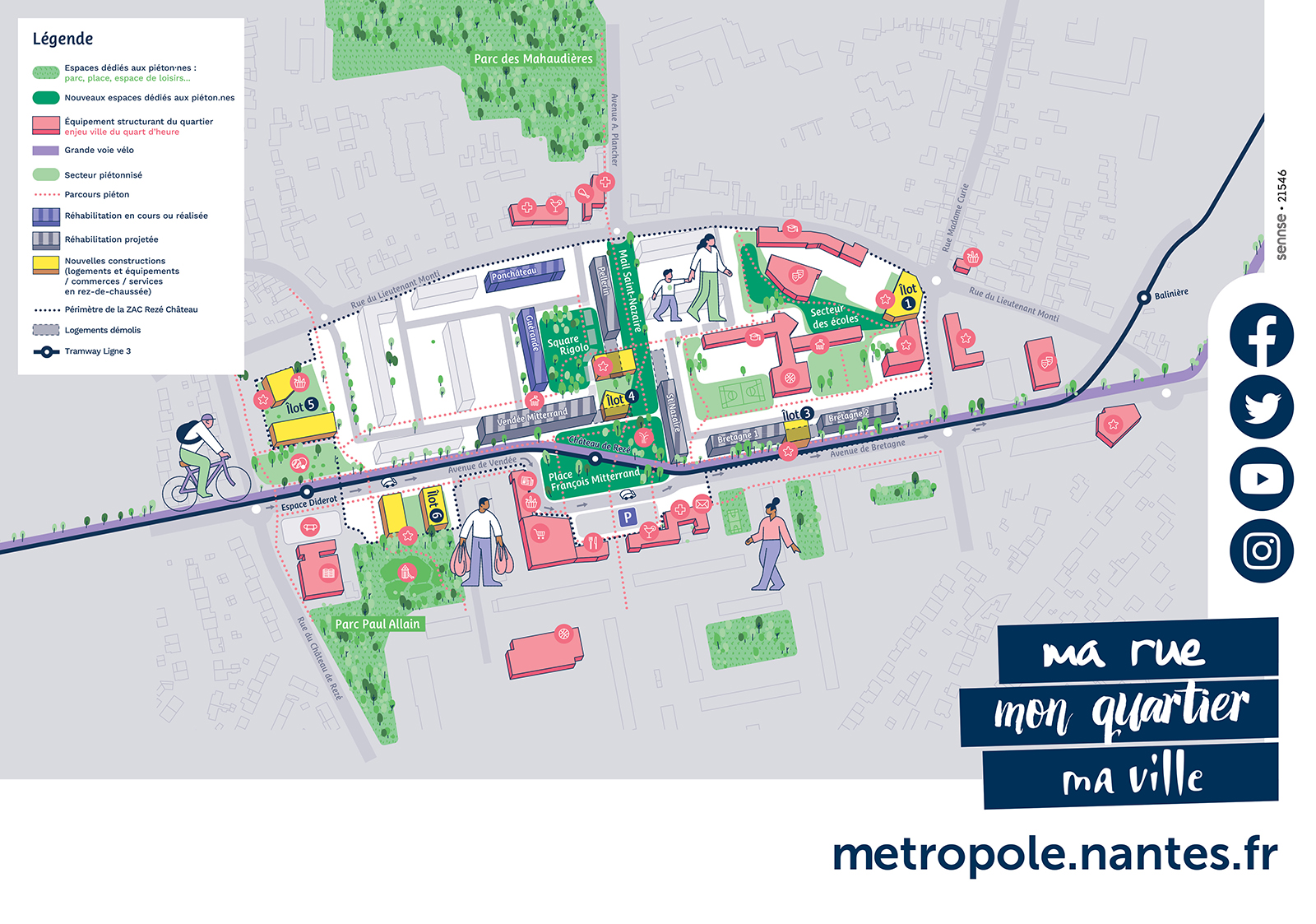Le 6 octobre 2023, le conseil métropolitain a approuvé l’extension du périmètre de la ZAC Château. Il inclue désormais la place Odette-Robert et le secteur de l’Acheneau. Une modification qui permettra de diversifier l’offre de logements et de désimperméabiliser les sols.